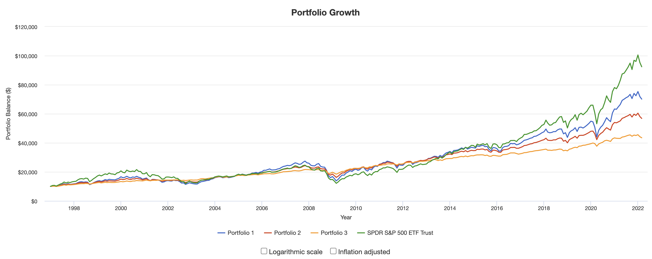 이 전략을 portfolio visualizer에서 백테스트(1997.01~2022.02)한 결과는 다음과 같다.